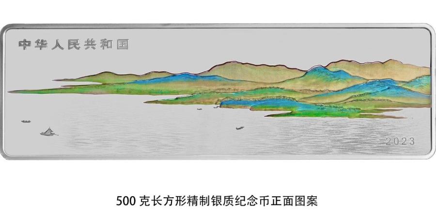 500克长方形银质纪念币为精制币,含纯银500克,规格160毫米×50毫米,面额150元,成色99.9%,最大发行量2000枚。