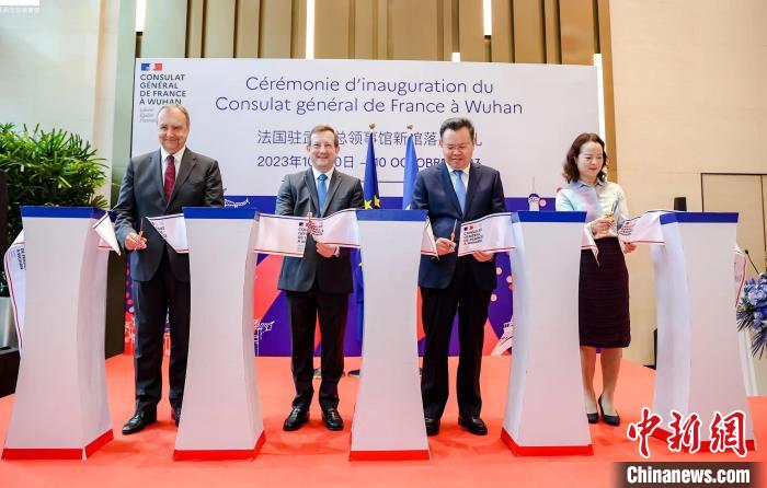 中新社武汉10月10日电 (武一力)法国驻武汉总领事馆10日迎来建馆25周年。当日,位于武汉市江岸区环球智慧中心的法国驻武汉总领事馆新馆举行落成仪式,法国驻华大使白玉堂为新馆揭牌。
