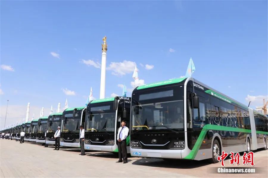 2023年7月4日,来自中国的宇通客车批量交付仪式在哈萨克斯坦首都阿斯塔纳独立广场举行。张硕 摄
