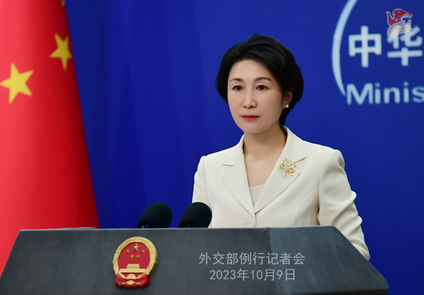 中新网北京10月9日电 (记者 李京泽)中国外交部发言人毛宁9日主持例行记者会。有记者就巴以冲突和美国向以色列运送军事设备提问。