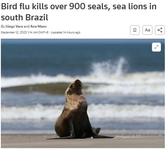 报道称,高致病性禽流感病毒也在其他动物种群中传播,包括海鸟、海豹和海狮等动物。巴西当局收集了海滩上死去的鼠海豚和企鹅的尸体样本,但检测结果尚未得出。