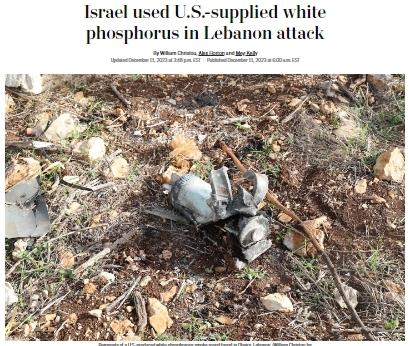 在柯比发表此番言论之前,另据《华盛顿邮报》11日报道,此前10月,以色列轰炸了黎以临时边界黎方一侧的多个地区,并在袭击中使用了白磷弹。