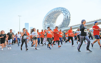 人们踊跃参加“迪拜跑”活动。
