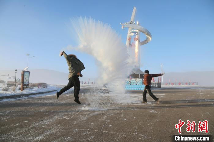 12月13日,“中国最冷小镇”最低气温降至-45.1℃,游客在体验“泼水成冰”。冯宏伟 摄