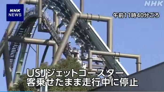 大阪环球影城过山车突发故障 乘客倒挂40米高空