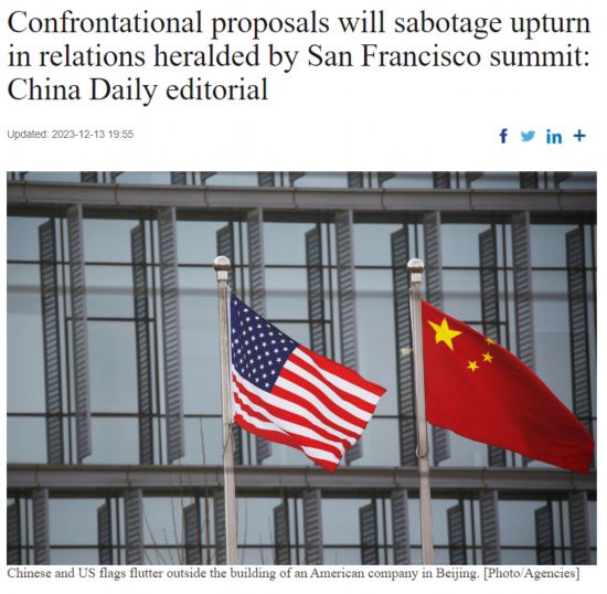 11月,旧金山会晤达成共识,中美双方应加强沟通,妥善管控分歧,推进对话合作。然而,委员会的提议却与旧金山会晤共识背道而驰,充满对抗性。提议或将导致美国国会于明年出现更多反华立法,这无疑将给双方关系的改善蒙上阴影。