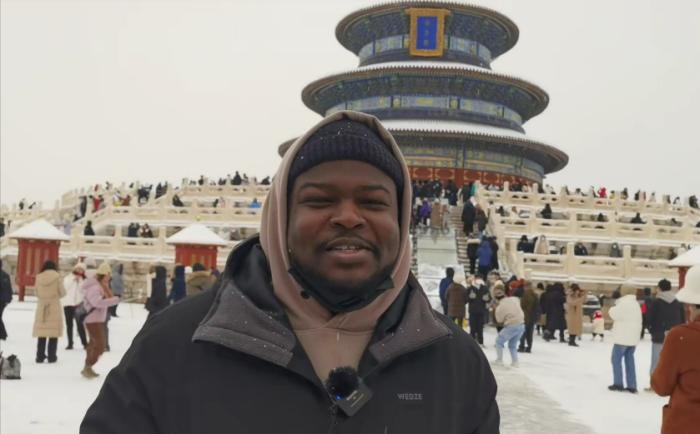 当日正值大雪,银装素裹的天坛宛如一幅画卷,古老的祈年殿在白雪的映衬下更显庄重肃穆。留学生们沉浸在大雪纷飞的美景中,纷纷拿出手机互相打卡拍照,记录下这美好瞬间。哈萨克斯坦籍留学生阿迪力(ARYSTAN ADIL)向记者介绍,这是他第一次来到天坛,“天坛是古代皇帝祭天祈雨的地方,我对中国的历史很感兴趣。”阿迪力说。