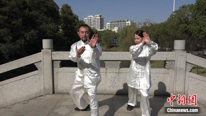 美莎和常州大学体育学院硕士生导师 ,国家武术教练员一级裁判员许晓阳学习太极。葛勇 摄