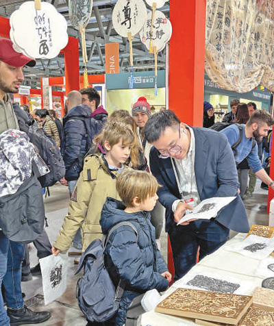 在另一边的文创产品与创意礼品展位,悬挂在空中的风筝和灯笼,桌上摆放的陶瓷、丝织、扎染等传统手工艺品,都传递着浓浓的中国文化韵味。前来观展的意大利观众亚历山德拉对故宫博物院和国家博物馆设计的文创书签爱不释手。她表示,绘有“清明上河图”“千里江山图”等作品的书签造型优美、特色鲜明,她准备把书签作为节日礼物送给自己正在学习中文的孩子。她还告诉记者,中国对法国、德国、意大利、荷兰、西班牙、马来西亚6国持普通护照人员实施免签入境政策的消息传来后,她和家人都很高兴。“我期待明年和孩子一起去中国走走,深入体验中国文化。”