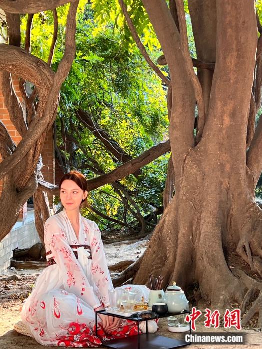 娜斯佳喜欢中国的汉服和茶艺(受访者供图)
