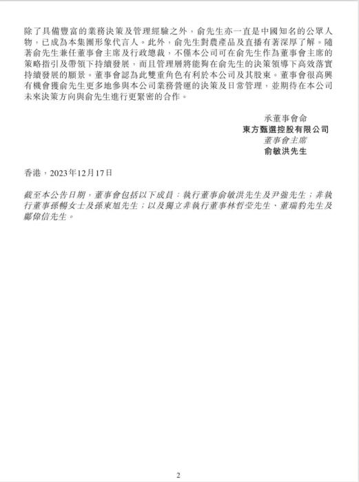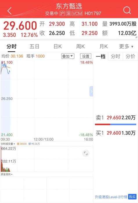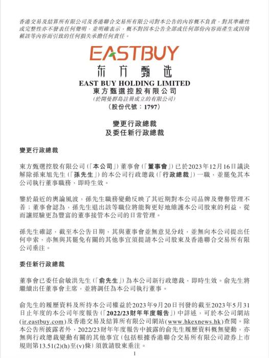 中新网12月18日电 12月18日,东方甄选开盘后股价大涨,截至发稿时,涨超10%。当日凌晨,东方甄选微博账号发布的直播预告海报显示,董宇辉的身份已成为“东方甄选高级合伙人”。12月17日,东方甄选发布公告称,董事会已于12月16日议决解除孙东旭的行政总裁一职,并罢免其公司执行董事职务,即时生效。(中新财经)