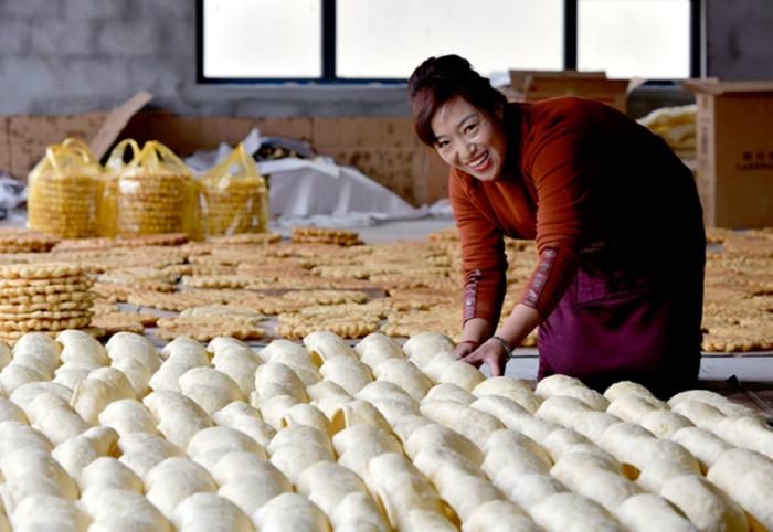 图为藏族阿佳在打包“卡塞” 中新社记者 贡嘎来松摄