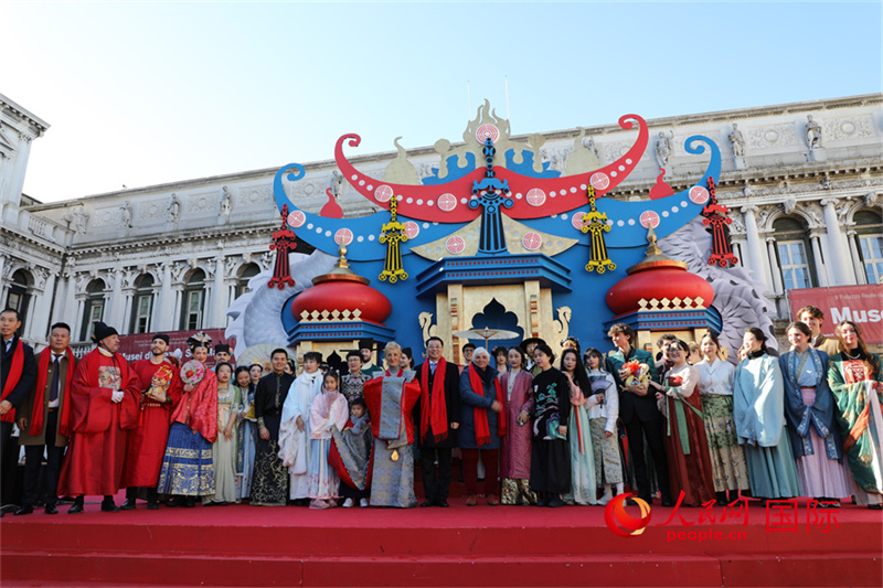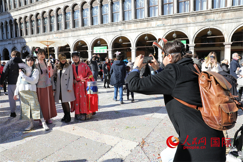 人民网威尼斯2月14日电 (记者谢亚宏)2月13日,为期两周的年度威尼斯狂欢节迎来最后一天,期间举行了威尼斯大学孔子学院与苏州丝绸博物馆合作主办的汉服巡游活动。