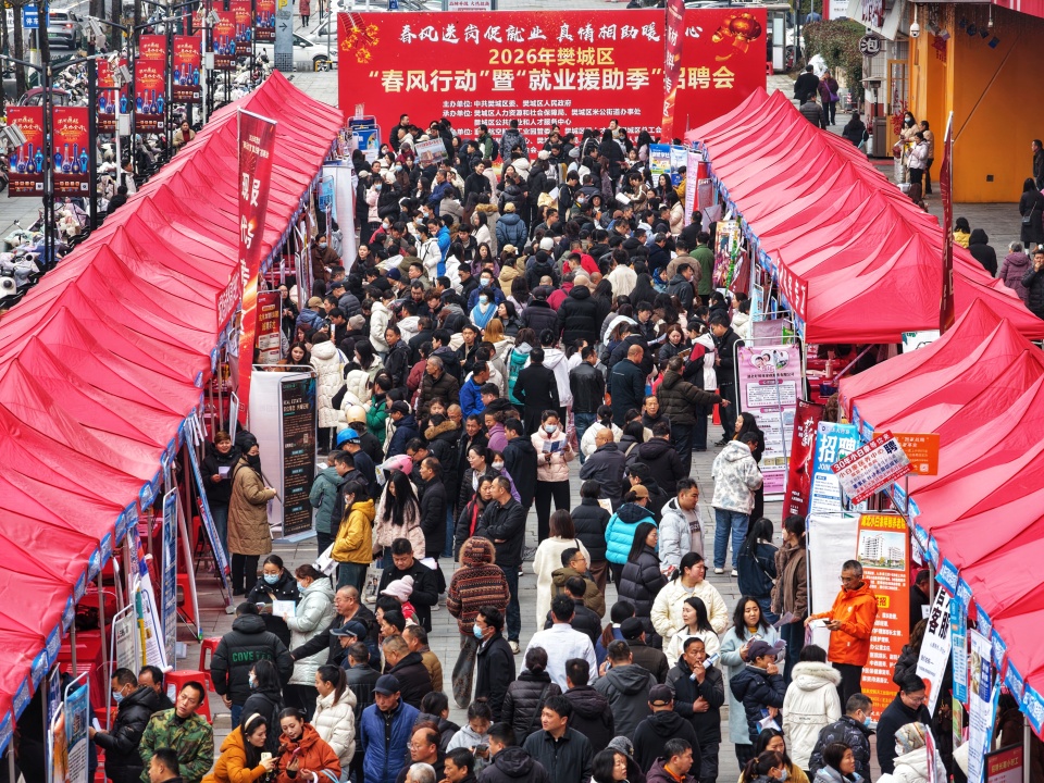 2026年2月26日,求职者在湖北襄阳市樊城区“春风行动”暨“就业援助季”招聘会现场咨询岗位信息。新华社发(谢勇摄)