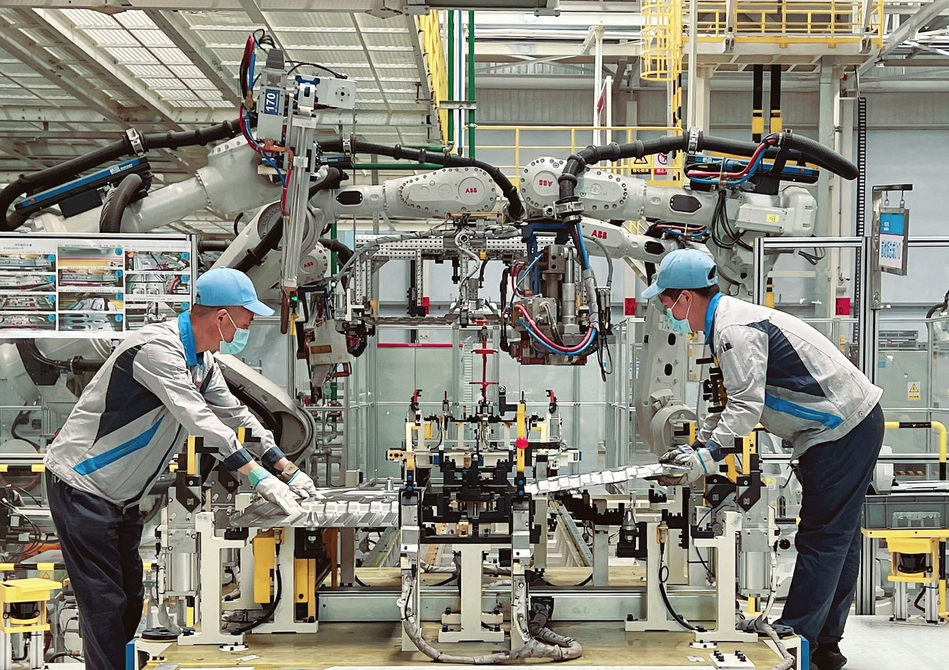 5月25日,大运集团新能源汽车生产基地,工人正在加紧生产电动车部件。运城经济技术开发区聚焦企业“急难愁盼”问题,积极谋划,主动对接,开展“纾困增效·金融助企”专项行动,对受疫情影响的企业开展精准帮扶。目前,得到有效帮助的大运集团全面恢复正常生产。(记者李兆民摄)