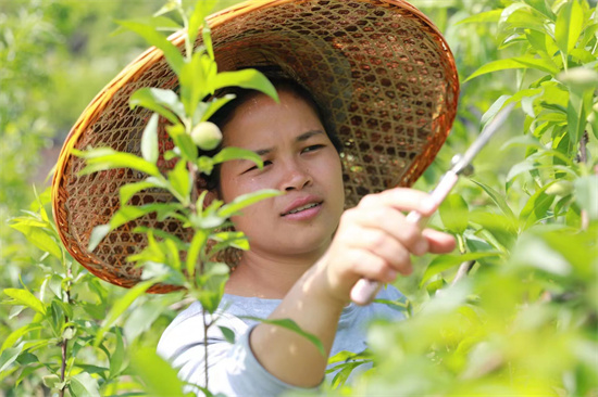 “今年是一个丰收年,我们正在给果园松土和缩果。等下个月底成熟了,欢迎大家来吃甜蜜蜜的黄桃。”东安县大庙口乐福村,成片的黄桃进入挂果期,唐云云站在“云端”,提前向网友发出丰收的邀请。