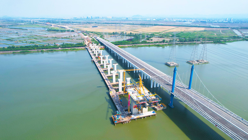 浙江杭绍甬高速杭绍段曹娥江特大桥墩柱全部浇筑完成