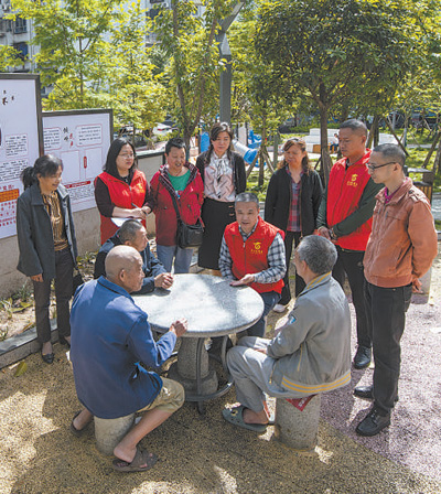 如今走进富民花园小区,曾经狭窄的过道变得宽敞平整,随处搭建的棚子、板房早已不见,取而代之的是新建的小花园、健身广场。“我们通过楼栋工作日征求居民意见,聚焦大家需求,做好拆违后的小区环境综合整治。”兰江带着记者,边走边介绍,“这儿是牡丹苑,那儿是玉兰苑,根据一些居民提出的丰富小区花草品种的意见,我们分类制定了主题绿化方案。”