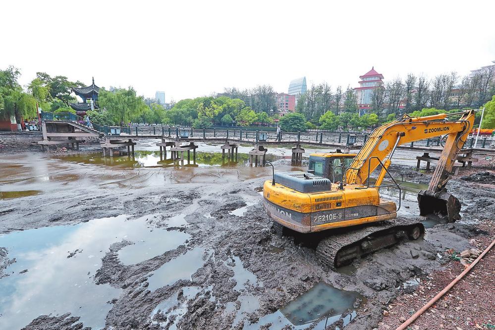 目前,昆明翠湖公园正加紧推进湖塘清淤工程,力争6月底前全部完成。届时,湖塘水体环境将得到有效改善,水清岸绿的景致更美。工程自4月起实施,对4个观赏湖塘浅表层开展人工配合绞吸式清淤机作业,清淤面积约5.3万平方米,总清淤量约1.59万立方米。1、2号湖塘现已基本完成清淤作业,3、4号湖塘正加紧施工。图为大型挖掘机械正在抽排底泥。