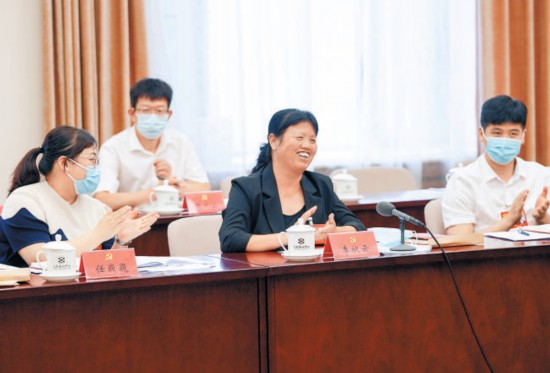 海淀代表团会议中,张海燕代表结合党代会报告,就中小科技企业如何留住科技人才提出建议。 本报记者 贾同军摄