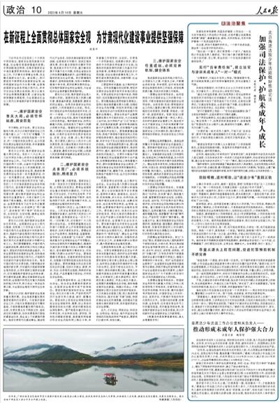 在新征程上全面贯彻总体国家安全观 为甘肃现代化建设事业提供坚强保障