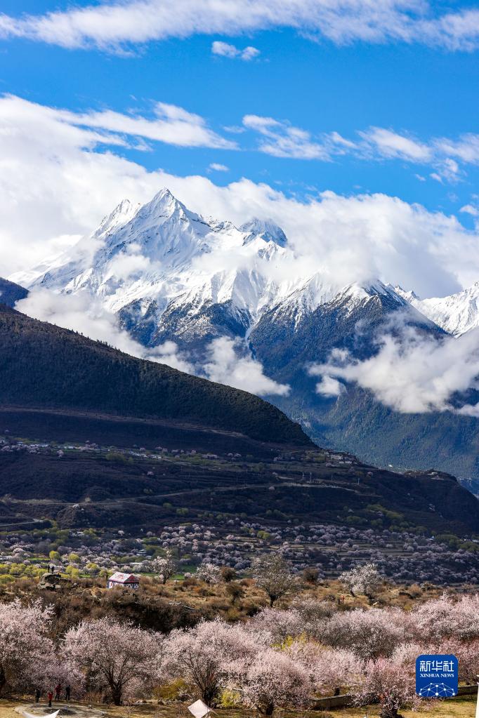清明时节,西藏米林市派镇索松村的桃花进入盛放期,吸引游客前来观赏、拍摄。