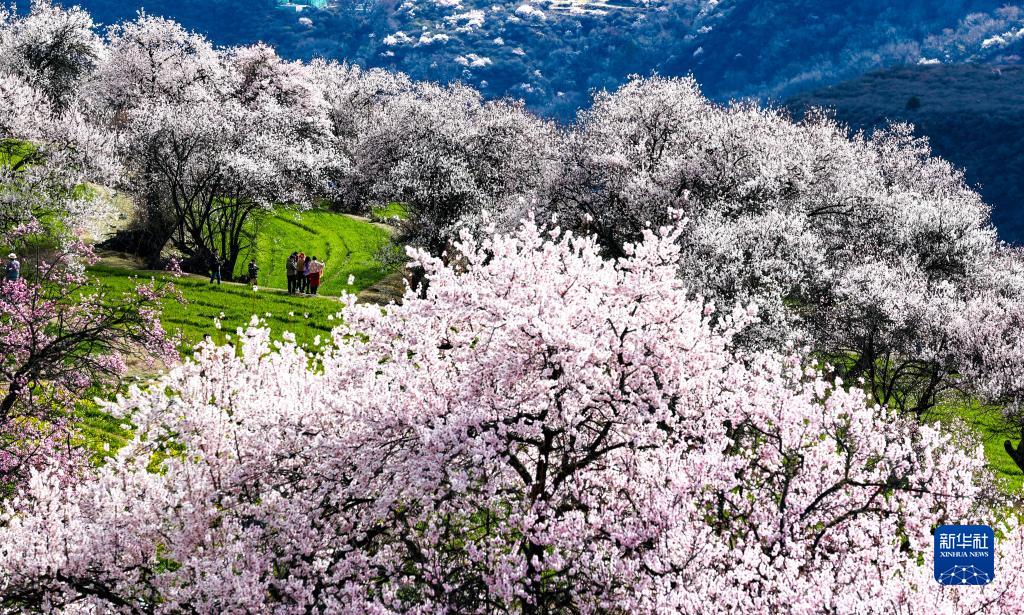 俯瞰索松村的桃花林(4月5日摄)。新华社记者 姜帆 摄