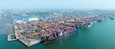 图为山东港口青岛港前湾集装箱码头。韩加君摄