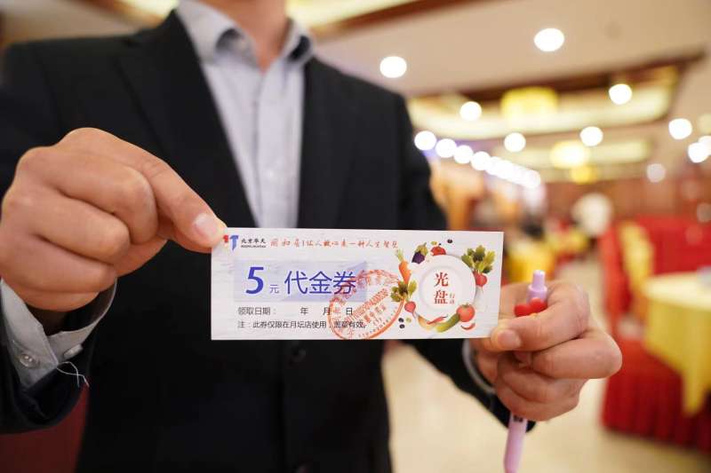 为鼓励顾客打包剩余餐食,同和居月坛店会发放代金券。新京报记者 王飞 摄