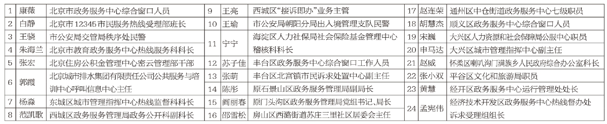 北京市政务服务管理局日前发布了第四届“北京榜样·政务服务之星”评选结果。通过举荐、初评、公示投票、专家评审、会议研究等环节,康薇等24人获评第四届“北京榜样·政务服务之星”荣誉称号,季盛松等26人获“北京榜样·政务服务之星”提名奖,陈卫明等150人获评2022年度“贴心服务标兵”称号。