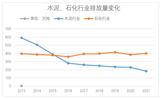 北京市水泥、石化重点碳排放单位历年排放变化