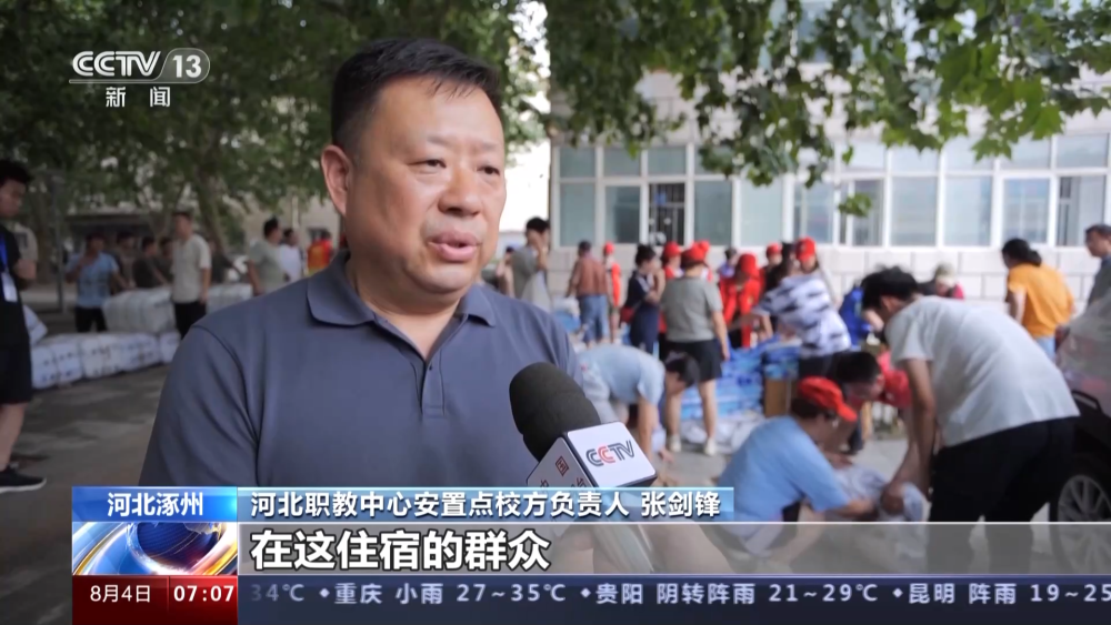 河北涿州受灾后,涿州职教中心紧急启动了受灾群众的安置工作,全校动员党员干部职工200余人参与到志愿服务工作中。正值学校暑假,校方为群众安排了学生宿舍供前来的受灾群众临时住宿,已有约2600名本地受灾群众陆续抵达这里。