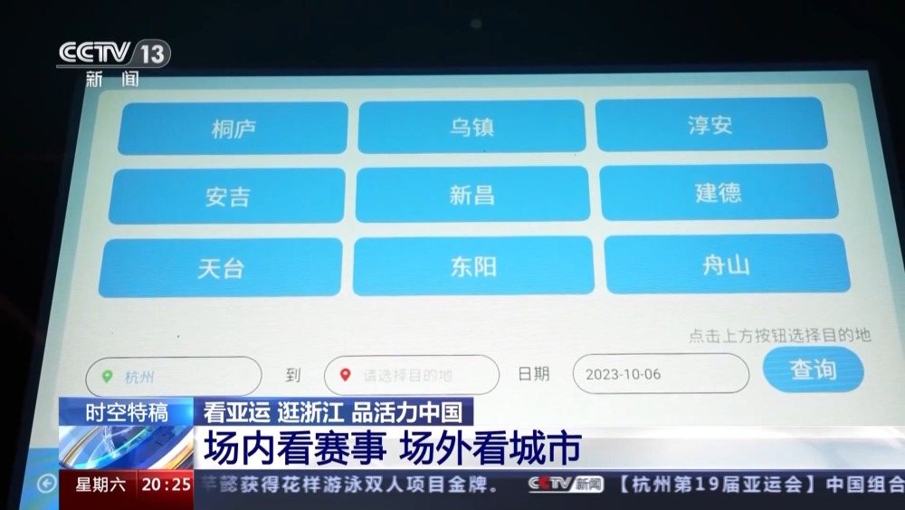 在杭州,想出门玩,但不知道怎么规划出行路线?别担心,到公交站就知道了。您看这块智慧公交站台的电子站牌,能查到杭州市内热门景点的换乘路线,也能看到去其他城市的长途公交线路,还能看到附近公共服务设施的状态。