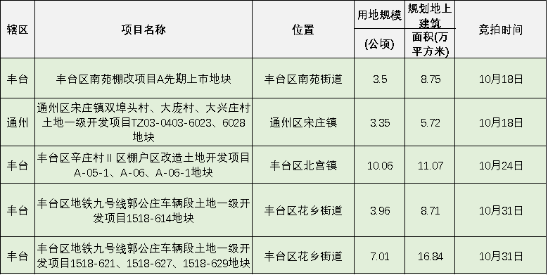 根据北京市规自委网站显示,10月份北京还将有5宗宅地入市,其中丰台4宗、通州1宗。