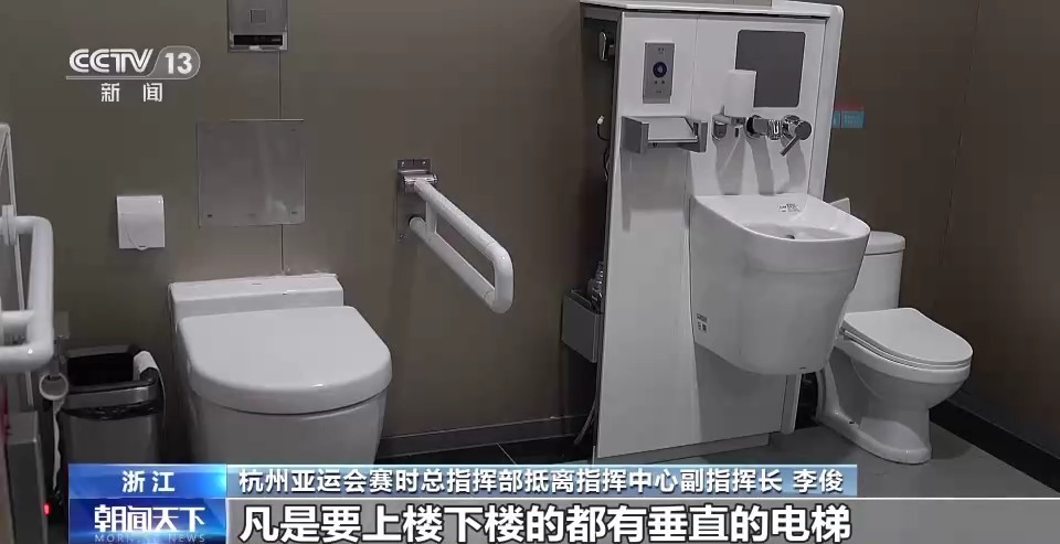 杭州亚组委场馆建设部场馆无障碍建设主管 张茜:临时的无障碍设施是在亚运会之前已经预制并且演练完成的,在这段时间会把它重新拿出来安装上去。主要要转换的无障碍设施包括无障碍的公交车上下平台,还有轮椅的无障碍看台,包括无障碍淋浴间。