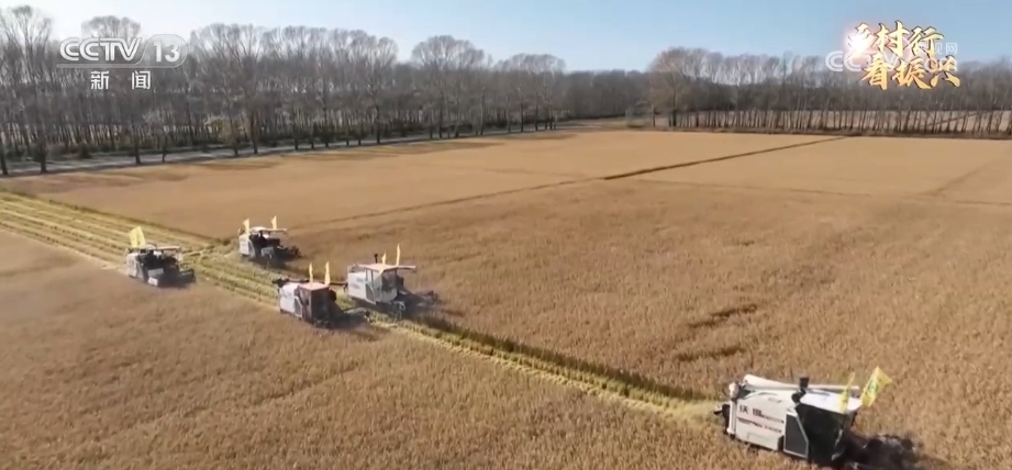 央视网消息:眼下,正是水稻收获时节。在黑龙江垦区军川农场的水稻收获现场,5台水稻收割机正在协同进行收割作业,趁着晴好天气抢收水稻。