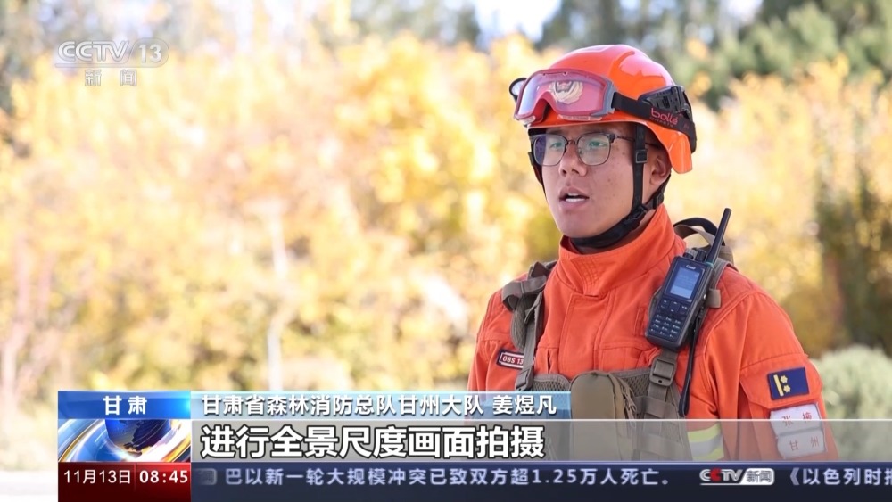 甘肃省森林消防总队甘州大队 姜煜凡:防火期,重点包括林内可燃物类型、森林覆盖率、可燃物载量等有关数据进行收集整理,同时利用无人机进行全景尺度画面拍摄。