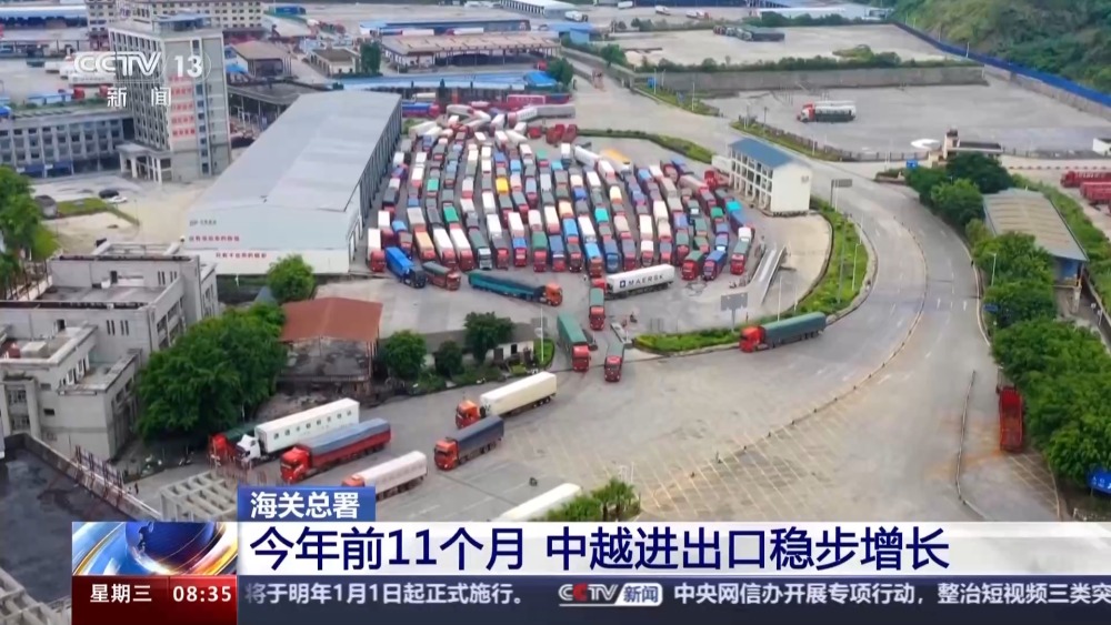 中国和越南建立全面战略合作伙伴关系15年来,双边货物贸易持续保持良好发展势头。据海关总署统计,今年前11个月中越进出口总值达1.45万亿元人民币,同比增长3.6%。其中,11月份当月中越进出口同比增长12.5%,规模创月度历史新高。