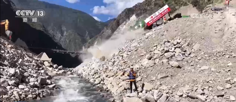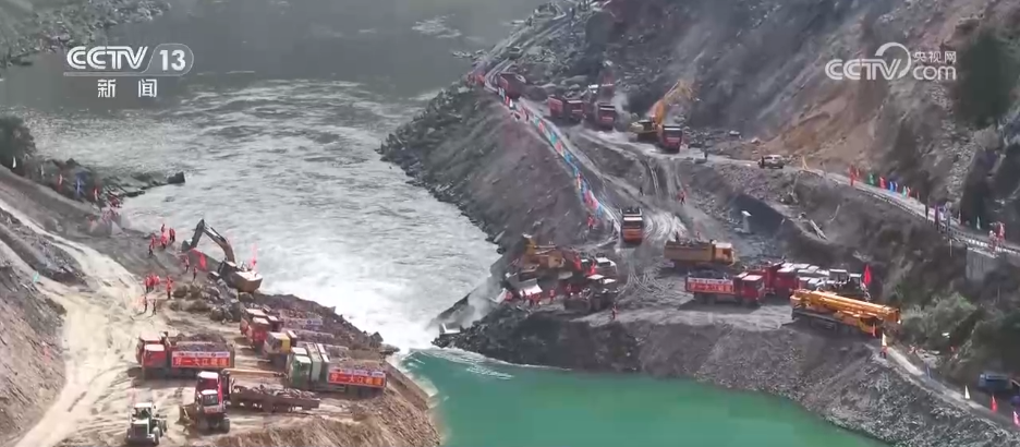 这里是位于川西雅砻江中游的孟底沟水电站建设现场,随着工程机械将最后一批石料陆续推入河道,孟底沟水电站正式完成大江截流。节流后,下游的这一片区域将会把水全部排空,为下一步大坝建设做好准备。