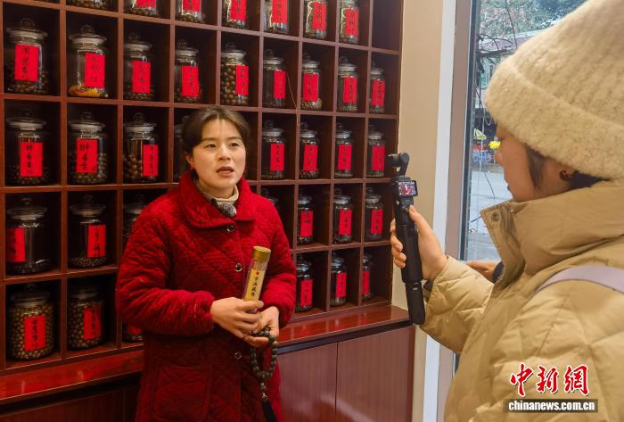2月8日,成都市久峰香料有限公司负责人陈红在店内接受中新社记者采访。 中新社记者 刘忠俊 摄