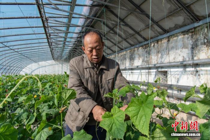 村民在杨家窑村的有机蔬菜大棚内工作。楚向东 摄