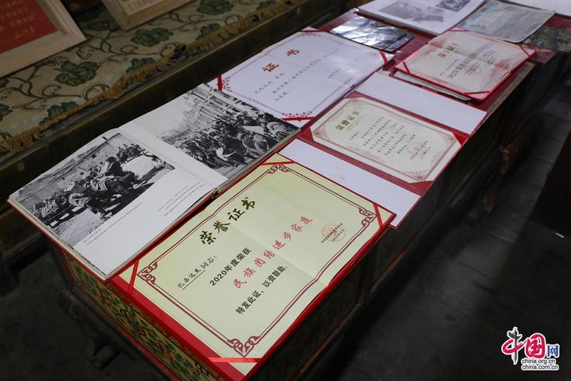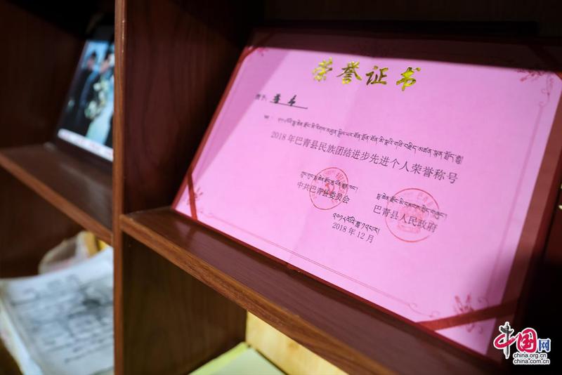 “记忆里的珍珠”红色收藏纪念馆创办人扎西达杰所获荣誉证书。中国网记者郑伟摄