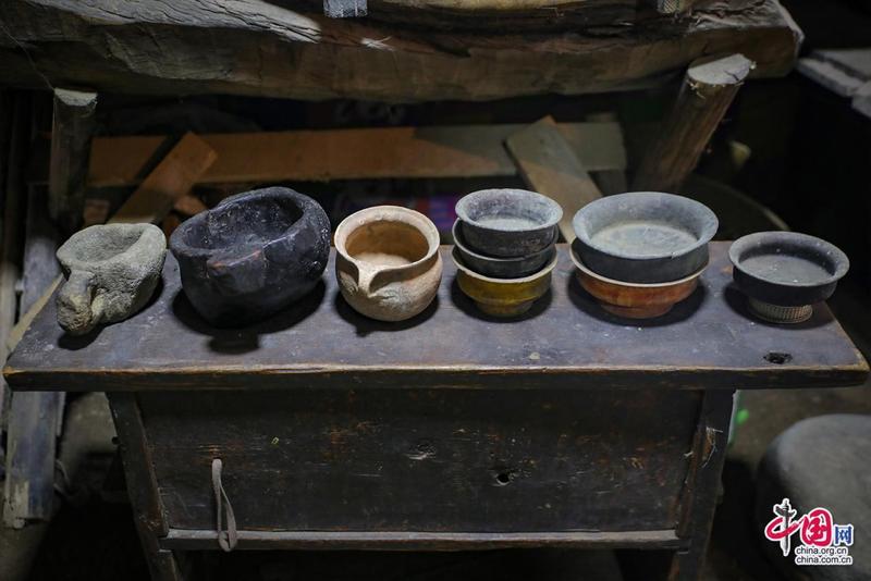 “记忆里的珍珠”红色收藏纪念馆内景·藏式碗具。中国网记者郑伟摄