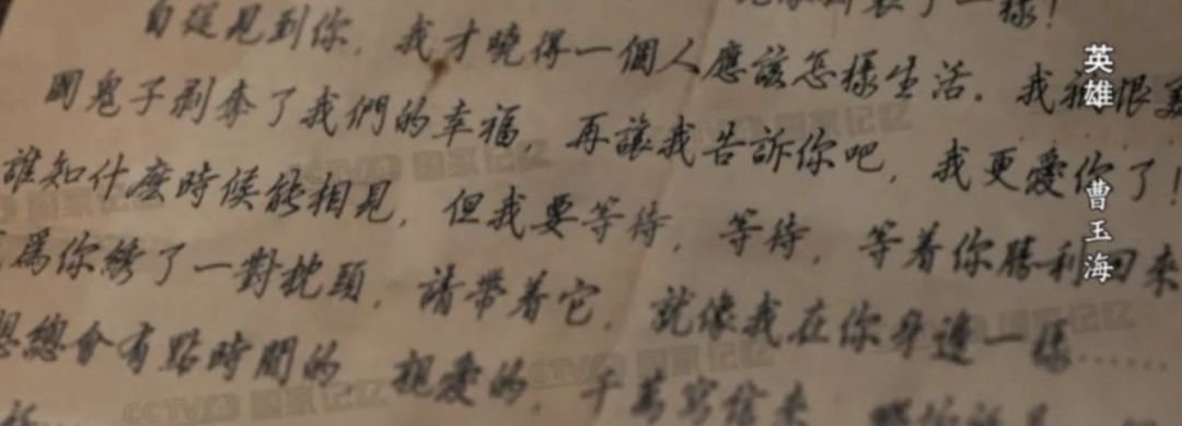 曹玉海未婚妻写给曹玉海的信。来源:CCTV国家记忆