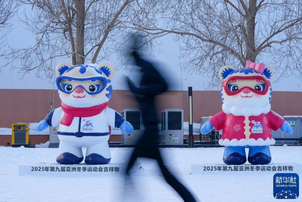 这是2025年1月5日拍摄的第九届亚冬会会徽冰雕。新华社记者 张涛 摄