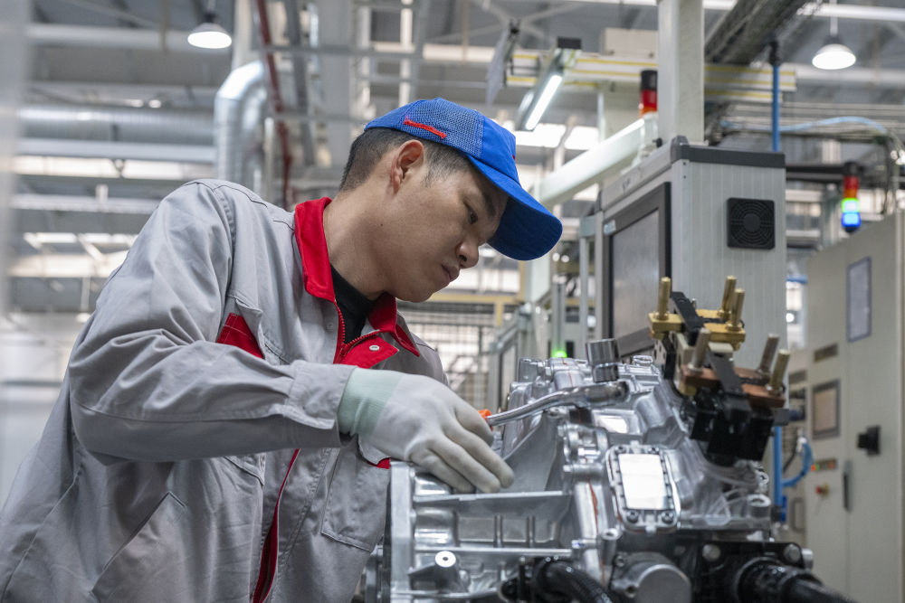 2月13日,工人在安徽省芜湖市繁昌经济开发区一家汽车核心部件生产企业生产线上忙碌。新华社发(肖本祥摄)