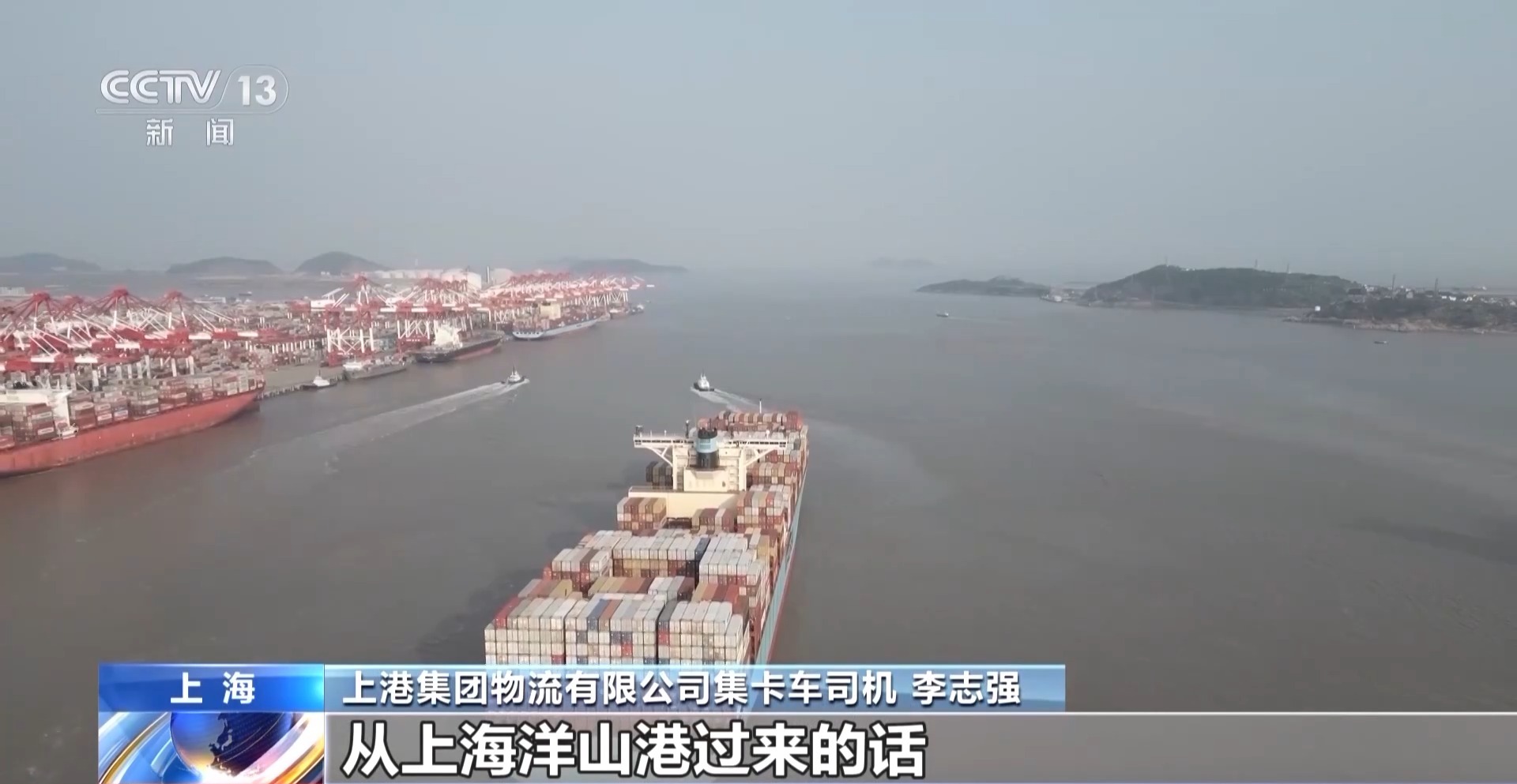 上港集团物流有限公司集卡车司机 李志强:我们每天从上海洋山港过来,应该是六趟到七趟左右,收入肯定是比去年更可观了。