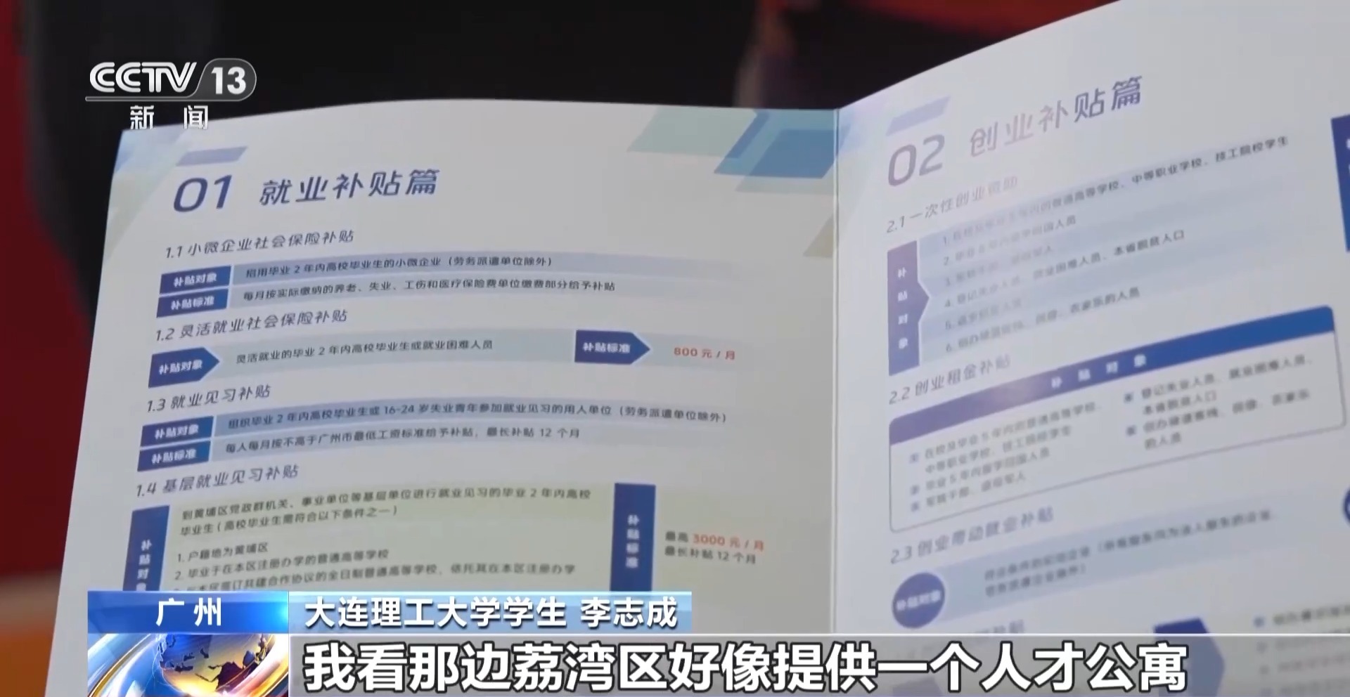 大连理工大学学生 李志成:我觉得广州对于人才的吸引力是可以的,我看荔湾区好像提供一个人才公寓,为应届生提供几年的人才公寓,解决了住房的问题。