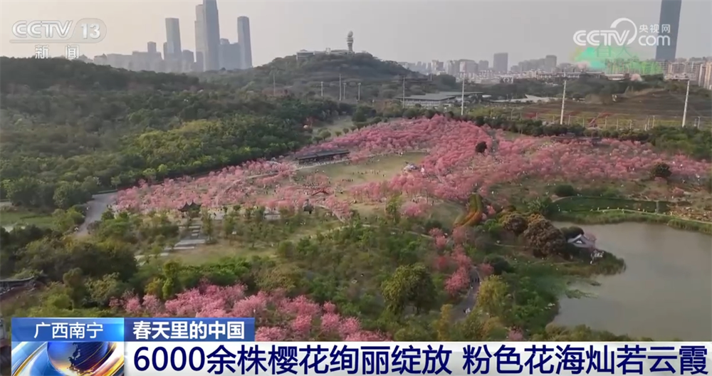 广西南宁:6000余株樱花绚丽绽放 粉色花海灿若云霞