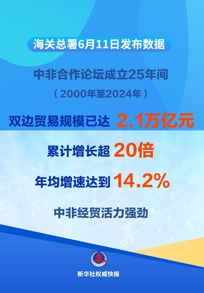 自2000年中非合作论坛成立以来,中非贸易规模屡创新高。海关总署11日发布数据显示,我国已连续16年保持非洲第一大贸易伙伴国地位,2024年,中非贸易规模首破2万亿元,达到2.1万亿元。